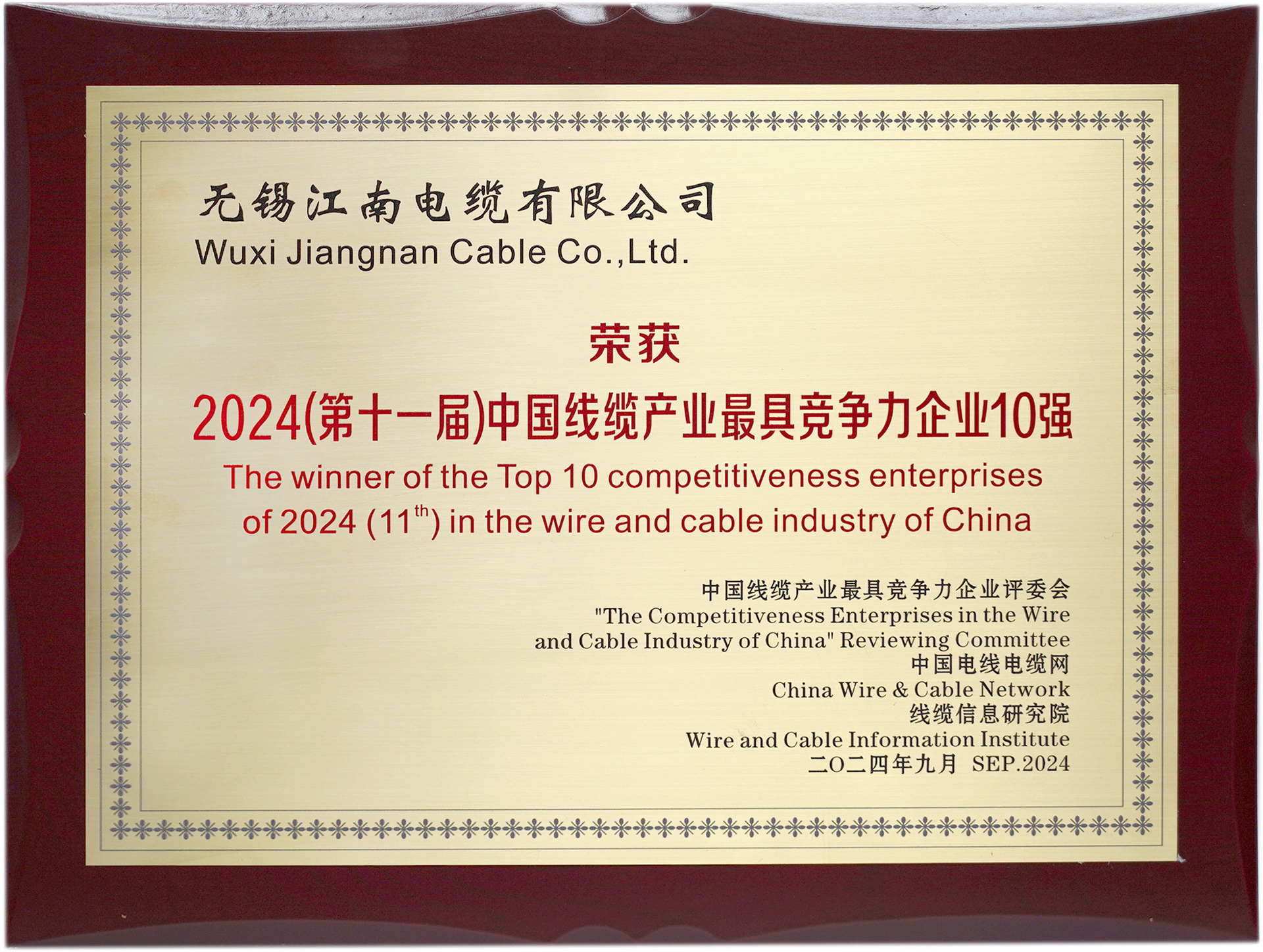 2025-09-182024(第十一屆)中國線纜產(chǎn)業(yè)最具競爭力